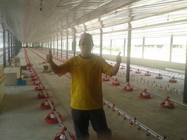 Penternak di Terengganu. Mula menternak 50,000 ekor ayam semusim. Dalam proses menambah lagi satu unit reban ayam di sebelah.
